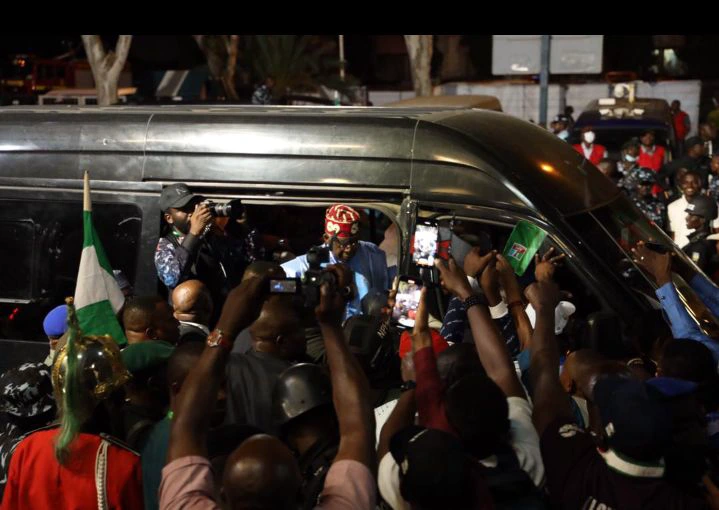 Tinubu was seen arriving at the scene of the APC Presidential primaries for the election of who is going to be the flag bearer of the party. Tinubu is representing the South West and will be looking forward to making sure that the delegates are behind him. He stepped off a black bus, looking elegant and strong ahead of the election results.